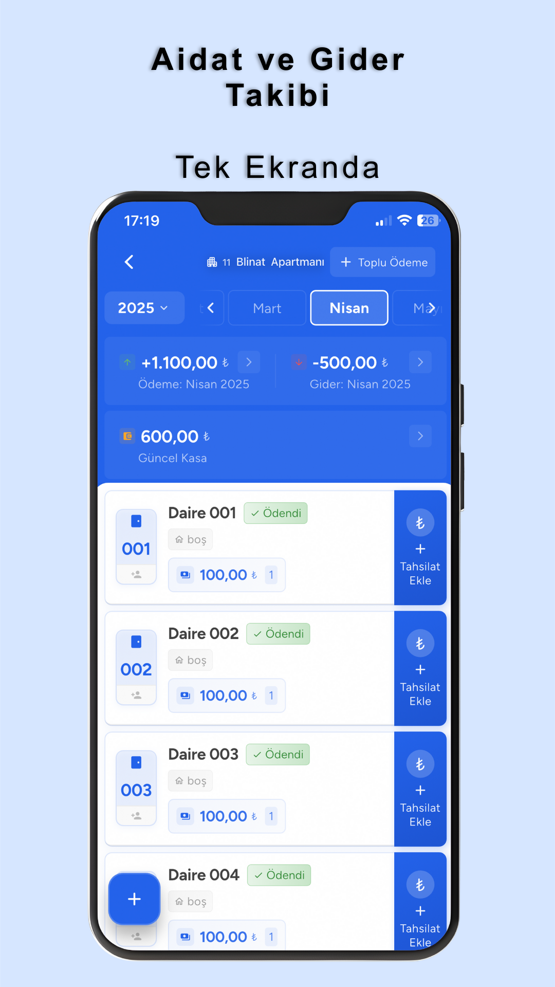 Apartman yöneticileri kolaylıkla gelir ve giderlerini bu uygulamadan yapabilirler.